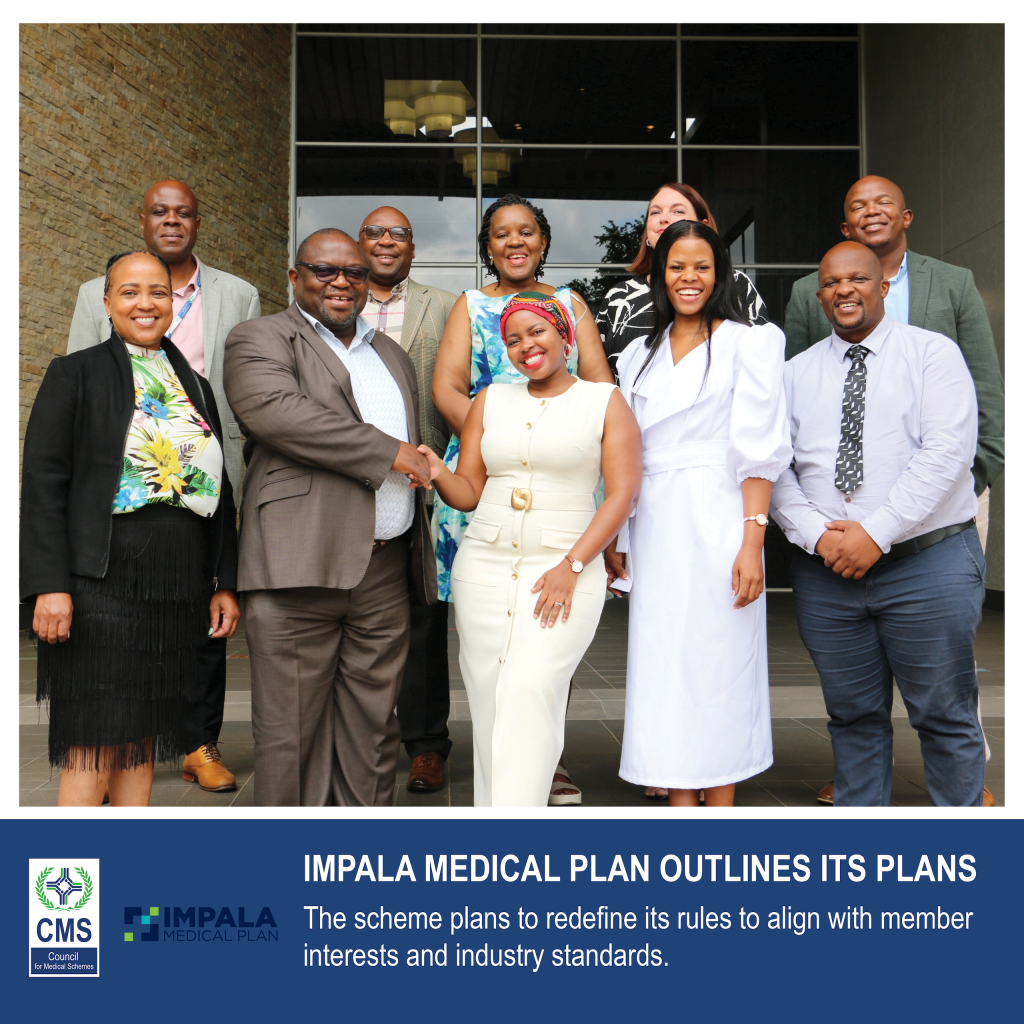 CMS Registrar Dr Musa Gumede received Impala Medical Plan Principal Officer Keomogetswe Macupa for a meet-and-greet. The engagement centered around understanding the scheme’s new strategic direction.